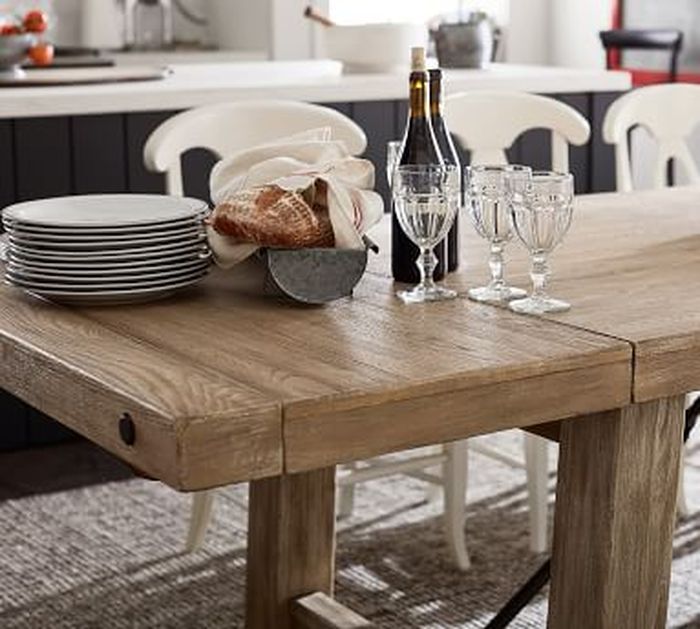 Reed Extending Dining Table Pottery Barn from assets.pbimgs.com There are different sizes and styles of these tables the expandable dining tables have either central sections or folding ends to add an extra leaf for more people. That's why we offer these unique jupe dining tables that seat four comfortably, but can expand to offer more seating for entertaining more guests. Which is why it's always nice to have some extra space when you need it.